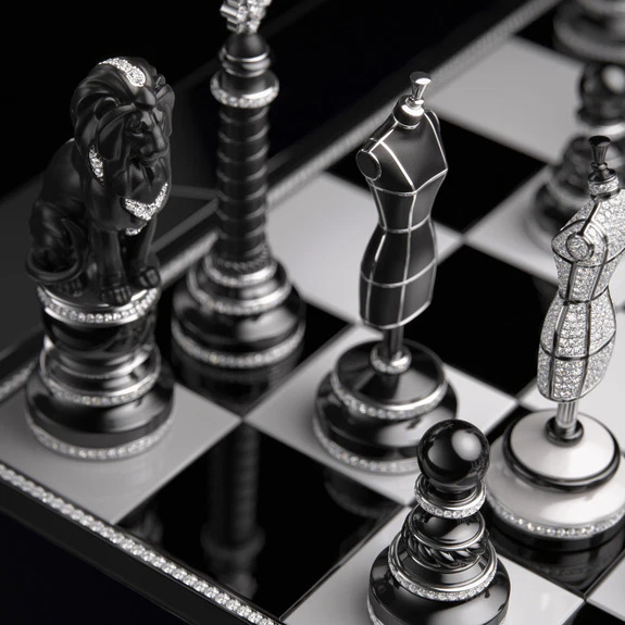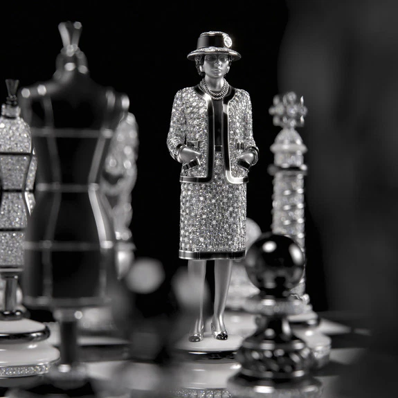 Chanel je v sklopu svoje kolekcije Chanel Coco Game predstavil 32-delni keramični šahovski komplet, ki je vse prej kot običajna namizna igra. Gre za osrednji kos serije 14 omejenih izdaj ročnih mojstrovin, ki jih je pod navdihom sveta iger ustvaril Arnaud Chastaingt, direktor Chanelovega studia za oblikovanje ur.