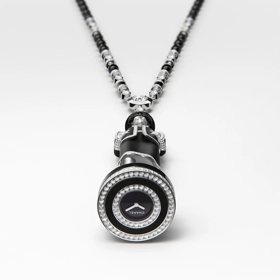Celoten dizajn je prekrit z diamanti, izdelanimi v posebni tehniki “tweed setting”. Na voljo je tudi dolga ogrlica Gabrielle, kjer silhueta oblikovalke elegantno sedi na vrhu bisernega obeska, v katerem se skriva še ena skrivna ura.
