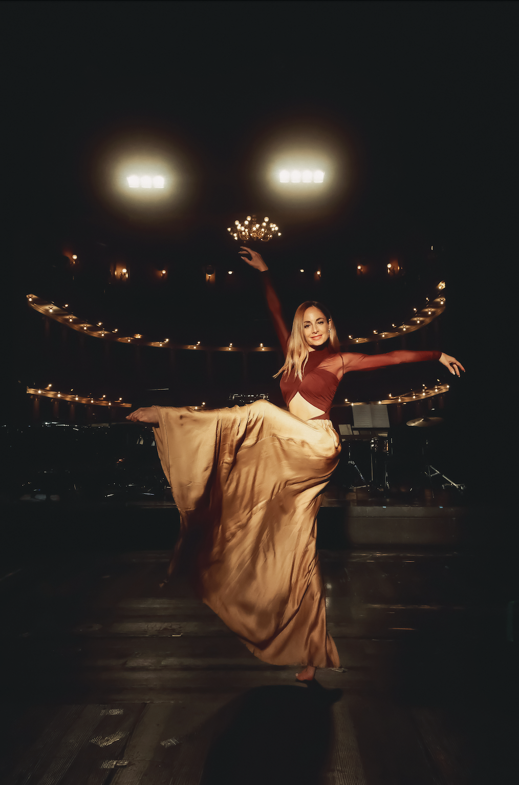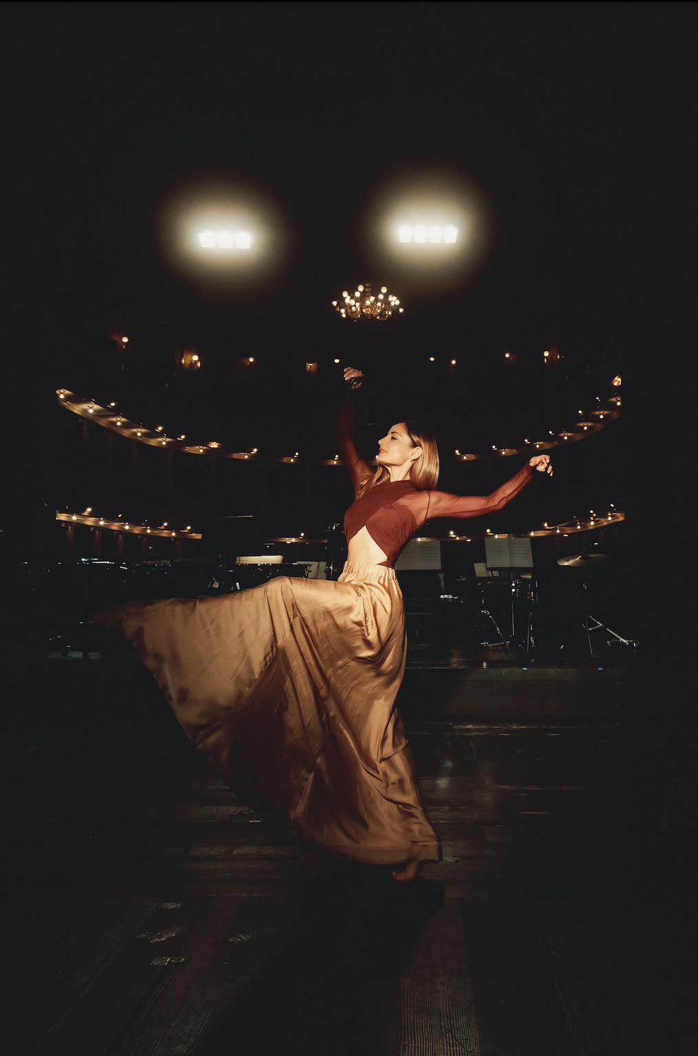 V središču modne koreografije nista le telesi, temveč tudi tkanine, ki dihajo z vsakim obratom, drsijo z vsakim pliéjem, in se razpirajo z vsakim dvigom.