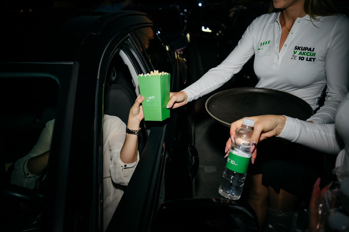 Ko je sonce dokončno zašlo za obzorje, so se povabljenci usedli v svoja vozila in pričeli z edinstveno kino izkušnjo – ogledom aktualnega filma “F1” z Bradom Pittom v glavni vlogi, in to kar iz udobja svojih avtomobilov. Za piko na i so hostese tik pred začetkom filma razdelile mehke odeje, steklenice vode in pokovko, s čimer so ustvarile popolno vzdušje za kino pod zvezdami.