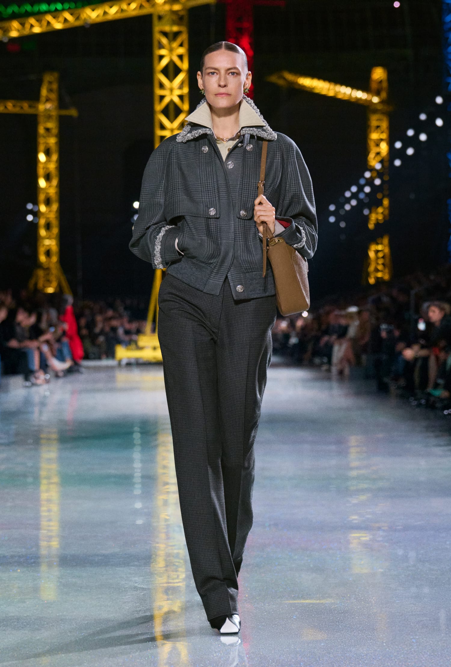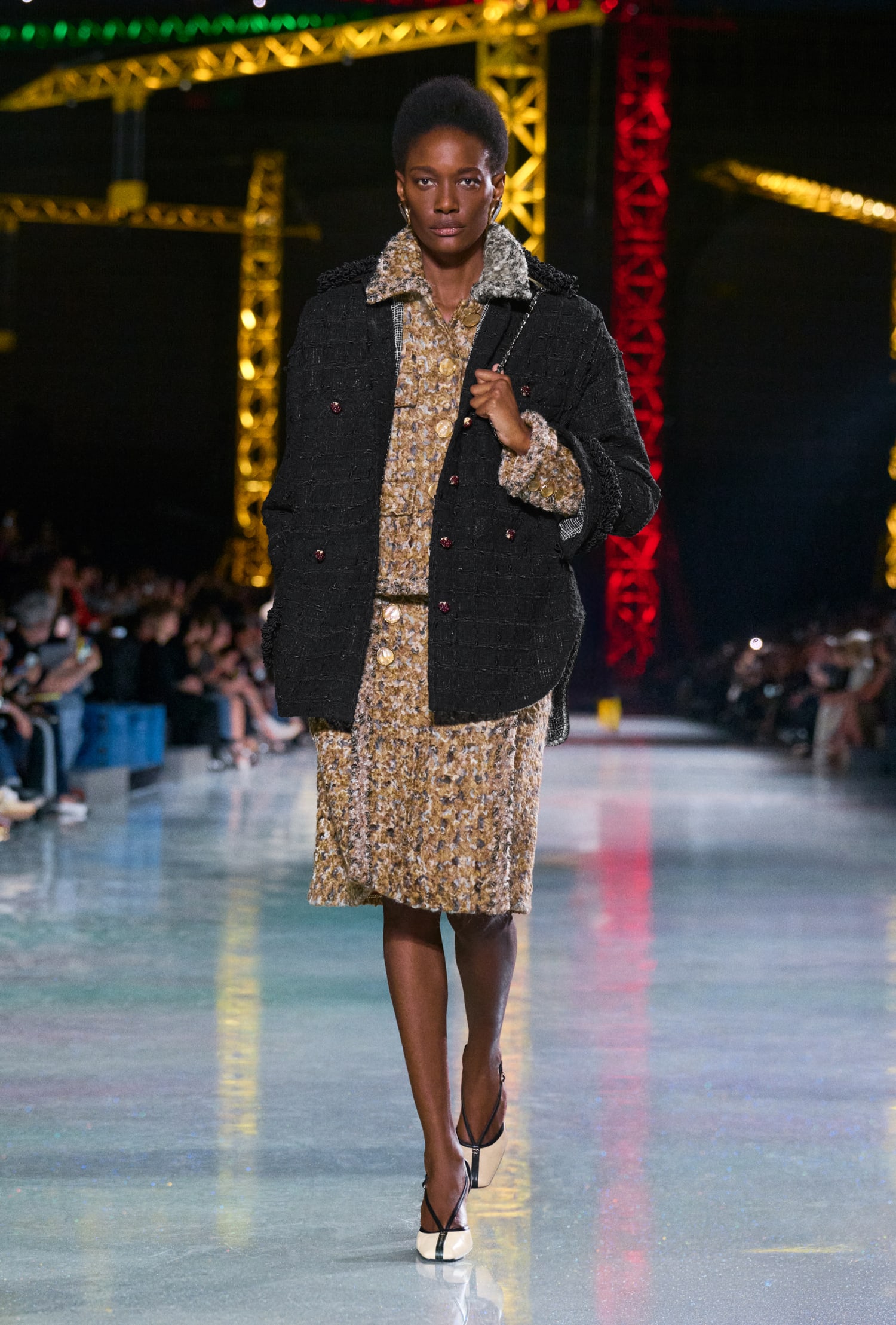 V središču teh časovnih premikov stoji arhetip Chanelovega kostima, ki je na novo zamišljen. Zajema tako rebraste pletenine kot klasičn tvid ter kompleksne tkanine, prepletene z umetnimi vlakni.