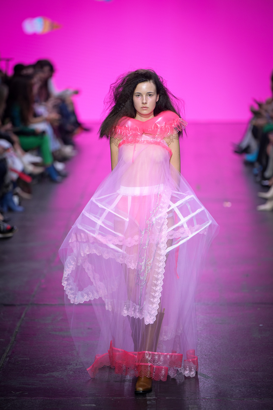 Kontrast med napihnjenimi formami in običajnimi kosi oblačil odpira vprašanja o telesu, normativnosti in preobleki. Kolekcija po njenih besedah vabi k igrivi, a hkrati subverzivni interpretaciji mode kot prenapihnjene vsakdanjosti.
