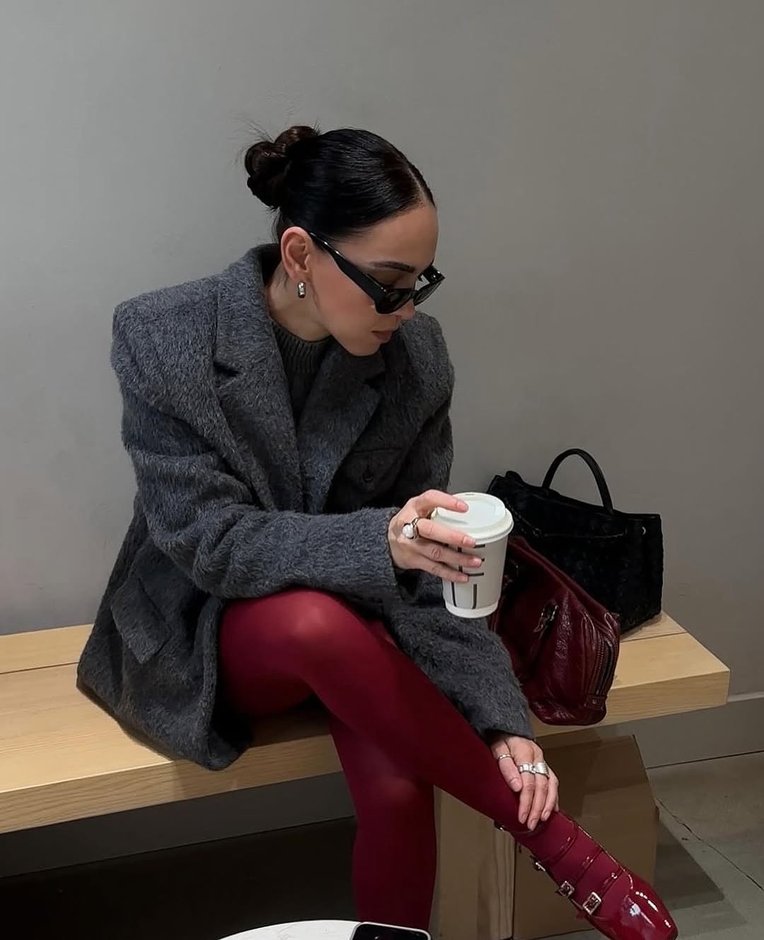 Kombinacija najlonk in čevljev v isti barvi lahko dvigne vašo zimsko kombinacijo na višjo raven. Preostali del outfita ni nujno, da je v istem odtenku, čeprav je popoln monokromatski videz lahko zelo zabaven.